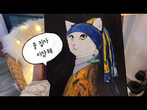 진주귀걸이를 한 소녀 명작 - 고양이ver